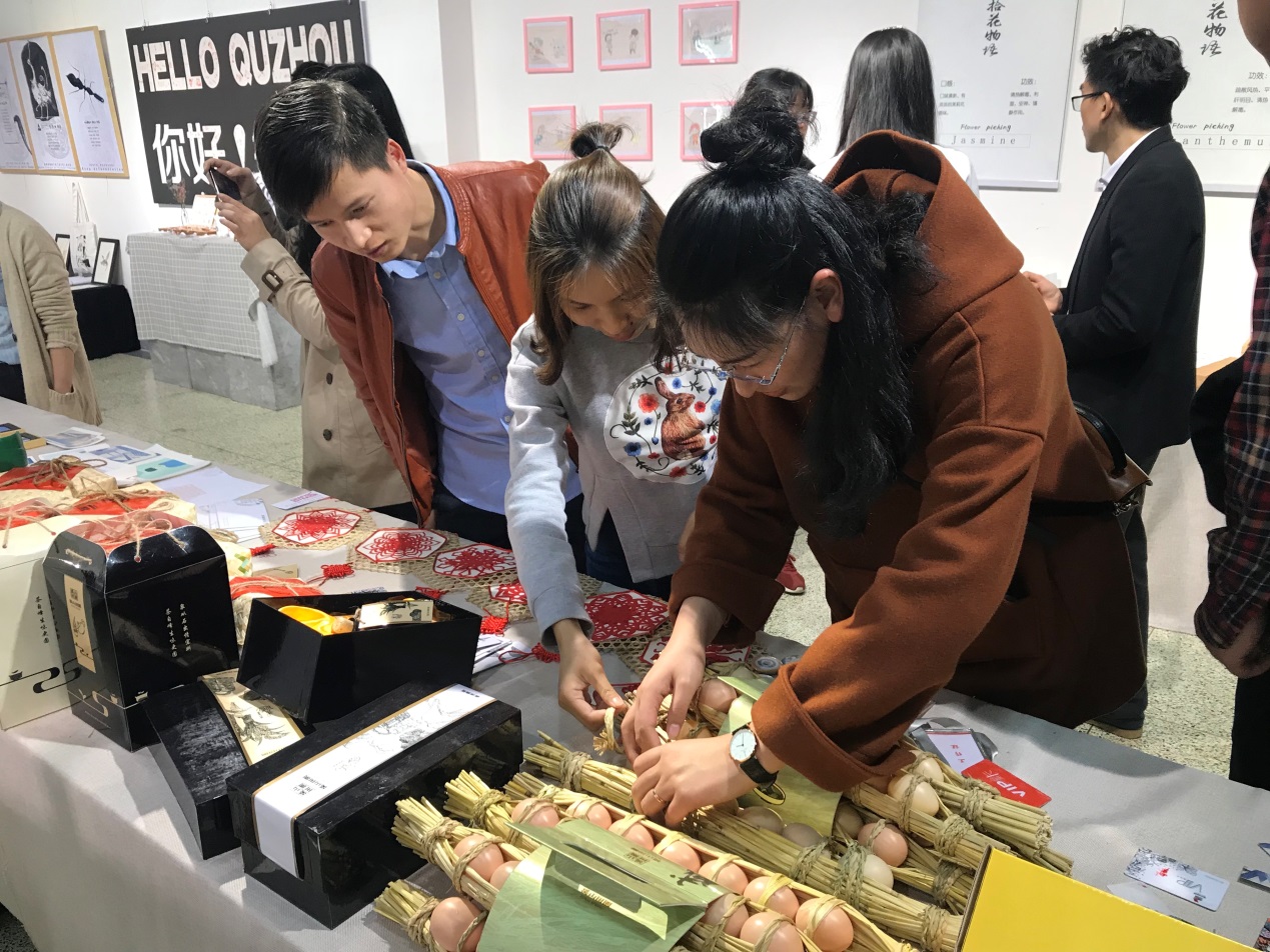 最后,新任教师来到艺术设计学院,参观了学生毕业设计作品展。作品展内容丰富多彩,表现手法各异,许多新任教师情不自禁拿出手机,拍下优秀的作品,并赞叹艺术设计学院师生的创意与才华。