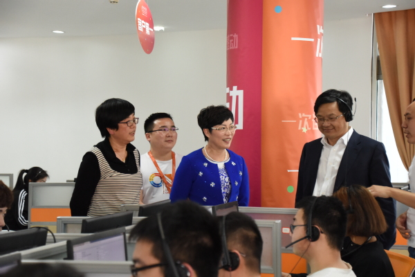 胡旭阳一行先后参观了AK体育客户端“书香四溢”阅读驿站、医学院母婴护理实训室、衢职·阿里巴巴客户体验实训基地等。在参观阿里巴巴客户体验实训基地时,胡旭阳副部长还饶有兴趣地拿起呼叫耳机,体验了一把“客户体验专员”的感觉。