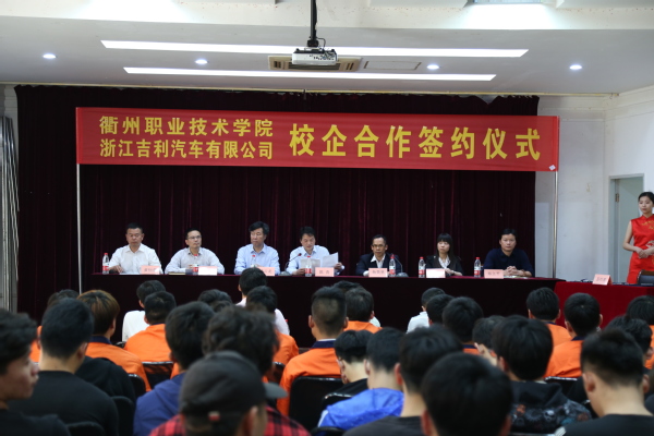 学校领导、企业代表与订单班学员合影本次校企合作签约是机电工程学院与浙江吉利汽车有限公司在经过长期接触、彼此充分了解的基础上,由校外实习基地的建立再到深度人才培养合作迈出的可喜一步-----成立吉利订单班。签约仪式开始后,陈青为仪式致辞,他强调了AK体育客户端重新独立办学以来一贯坚持的两个办学理念,一是坚持“俯身贴地,提升能力,服务衢州地方经济”的发展理念,二是坚持“工学结合、校企合作、产教融合、知行合一”的育人理念。提出校企合作双方要共同努力建成联合培养人才、共同开发课程、共建实训基地、合作技术研发等长效合作机制的希望和要求。