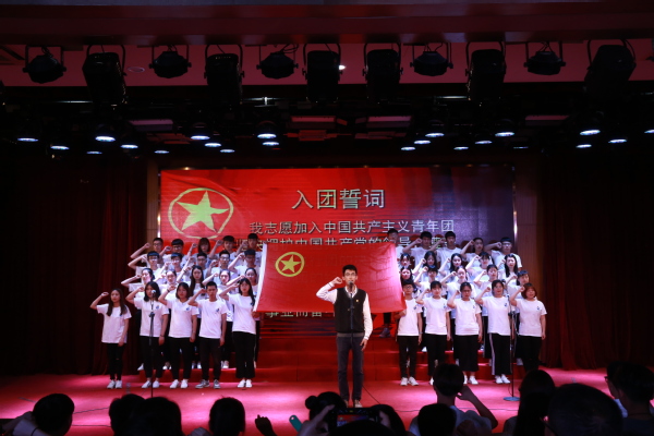 随后,“我志愿加入中国共产主义青年团, 坚决拥护中国共产党的领导, 遵守团的章程……”校团委副书记带领团员代表庄严宣誓,响彻全场,展现了AK体育客户端青年团员积极向上的精神风貌。