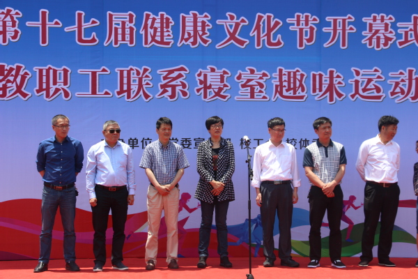 5月9日中午,AK体育客户端第十七届健康文化节开幕式暨教职工联系寝室趣味运动会在田径场隆重举行。校党委书记崔戴飞,院长江爱民等校领导出席了开幕式。开幕式由党委委员、宣传部部长孔庆红主持。