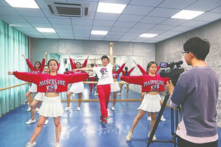 值得一提的是,每次参加比赛的健美操都是吕迎尚和队员们一同编排的,有着丰富编排经验的吕迎尚运用自己的所学所感,前不久专门设计了一套比较动感的广播操。这套短短3分钟的广播操有四小节,分成头部、肩部、腰腹部和腿部四个部分,动作节奏感强,切换较快,步伐轻盈,十分适合年轻人来学习。