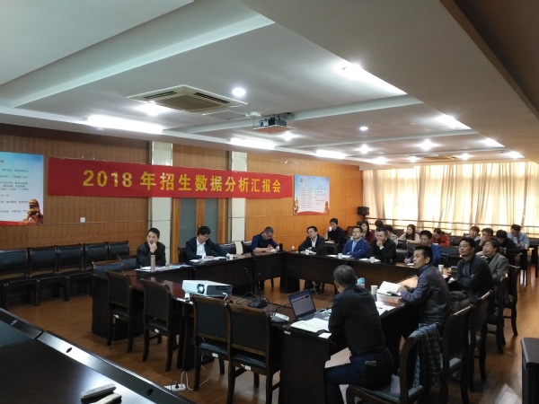 学生处处长陈海清对2018年新生的生源结构、生源地分布、录取分数及在全省同专业排名、招生宣传及效果分析等情况进行汇报,并在深入剖析招生相关数据的基础上,提出了对做好2019年招生工作的相应建议。随后,参会人员积极讨论,谏言谏策,会场气氛浓烈而融洽。
