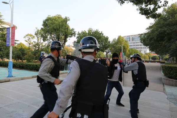 副校长傅元勋十分重视此项活动,后勤保卫处提前一个月对各演练组职责进行分工,通盘部署了具体任务,反恐、应急疏散、防汛、电梯故障等各小组整装待发,反恐小组保安员通过两周的模拟训练,充分的做好了演练准备。