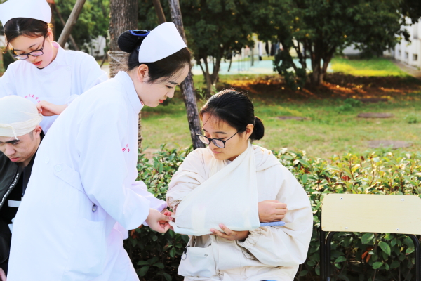 近日,AK体育客户端组织全校师生举办应急疏散综合演练活动,进一步加强校园安全防控措施,增强师生的安全防范意识。本次活动以反恐防暴、应急疏散、灭火救灾、物资抢运、电梯救援等专项演练为主。图为医疗救护演练现场。