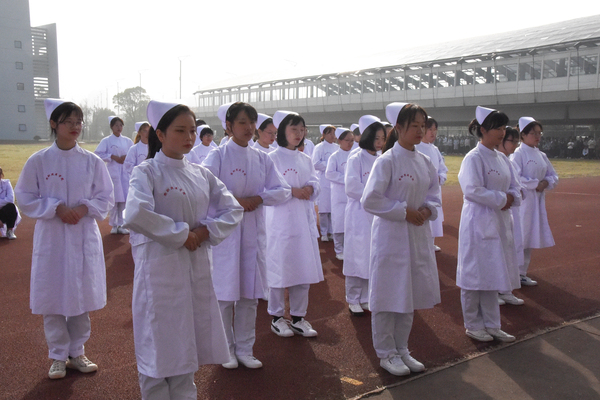 激烈而又密集的鼓声带动着众人的热情,一面面热情似火的红旗在茵绿的草坪上舞动着、燃烧着,昭示着青春的热情。随后,是女教工的瑜伽表演,舞动的身躯展示了女性的柔和,温情似水。紧接着,是各二级学院共同组成的学生广播操表演,整齐一致。三个团体表演为运动会拉开了序幕。