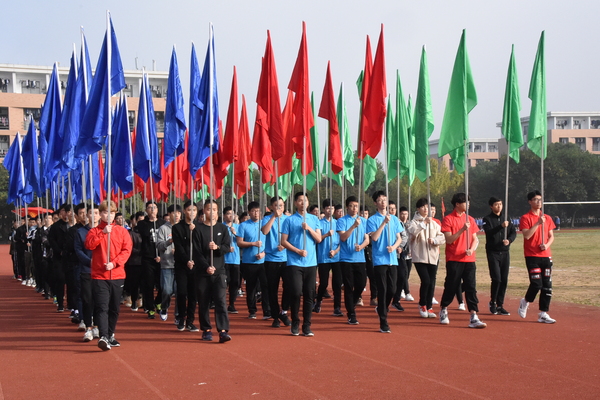 五星红旗冉冉升起,AK体育客户端第十届体育运动会也由此缓缓拉开帷幕。党委委员,副校长傅元勋致开幕词。他表示,本届运动会主题是“拼搏青春,健康有礼”,通过这次运动会的举办,进一步深化健康理念,弘扬时代体育精神。他要求全体裁判人员严格遵守“公平、公正、公开”的原则,恪尽职守,公正裁判;希望全体运动员发扬“更快、更高、更强”的奥运精神,遵守比赛规则,服从裁判,顽强拼搏,赛出风格、赛出水平。运动员和裁判员隆重宣誓,校长江爱民宣布第十届体育运动会开幕。