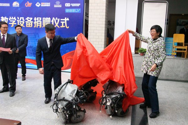 义乌吉利发动机有限公司捐赠了四台发动机,浙江万里扬股份有限公司在仪式现场捐赠高端卡车变速箱两台,“校企合作能定向地选择、培养学生进行实习就业。在教学过程中,企业会加大与校方的联系力度,让学生更了解企业的人才需求。让企业在一定程度上”万里扬股份有限公司人力资源部负责人刘立东在本次招聘会上收获满满,收到了诸多毕业生的求职简历。