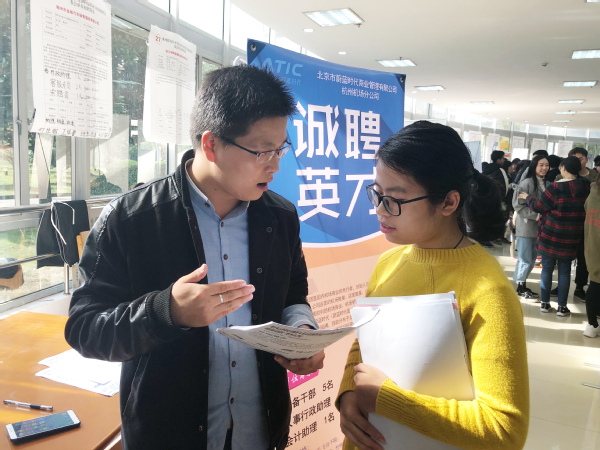 机电工程学院的陈如正在招聘会上寻找着适合自己的职位,谈及今天的招聘感想,他希望学弟学妹们可以好好珍惜在大学的时光,今后的面试,事先要对自己有正确的定位,再来匹配相关合适的公司,然后针对性地做准备工作。切忌不切实际,眼高手低,要对自己的未来有一定的规划。
