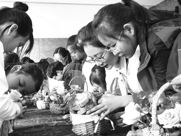 日前,AK体育客户端开展了“橙色同伴课堂”,通过朋辈互助、社团共建等,引导聋哑青少年体验参与。3年来,600余名大学生志愿者参与其中,累计服务时长超过3万小时,共结对帮扶聋哑青少年126人。图为大学生志愿者与衢州市特殊教育学校学生共同体验插花课程。