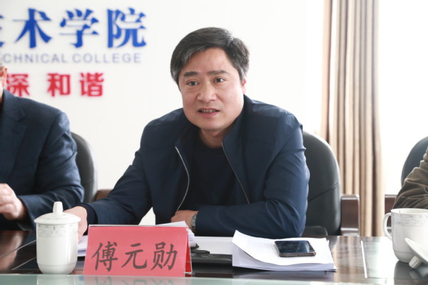 傅元勋副校长说,衢州与上饶两地经济交往日益频繁,两地政府正在推动《浙赣边际合作“衢饶示范区”建设》。在这个大背景下,两地高职院校、人社部门携手倡议成立四省边际职业培训联盟也是顺应大势,符合地方发展需要的。他向上饶职业技术学院的领导介绍了成立四省边际职业培训联盟的目的、首批联盟成员单位的架构、联盟的主要工作内容以及今后的工作计划。希望上饶职业技术学院能够加入联盟,实现资源共享、优势互补、合作共赢、协同发展。