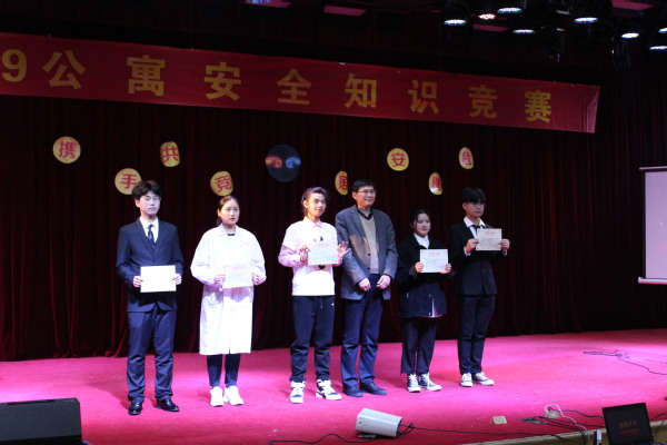 参赛选手分别为医学院、信息工程学院、艺术设计学院、经济管理学院、机电工程学院五个二级学院的学生代表。本次竞赛分为答题竞猜、知识抢答、你做我猜、风险题四个环节,以学生公寓管理条例为依据,将公寓安全知识、公寓安全检查规定等内容融入各个环节的题目中,既考验选手们的安全知识储备,又考验他们的随机应变能力和团队协作能力。经过激烈角逐,最终艺术设计学院代表队摘得桂冠。校党委副书记王东升为获奖队伍颁发了荣誉证书。