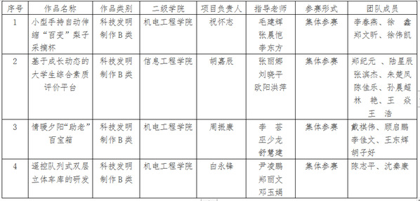 根据《关于组织开展浙江省第十六届“挑战杯”大学生课外学术科技作品竞赛的通知》要求,校团委组织开展了浙江省第十六届“挑战杯”大学生课外学术科技作品竞赛申报工作。经各二级学院组织申报,校团委、教务处、科研项目处审核,现将拟推荐项目进行公示,公示期5天。