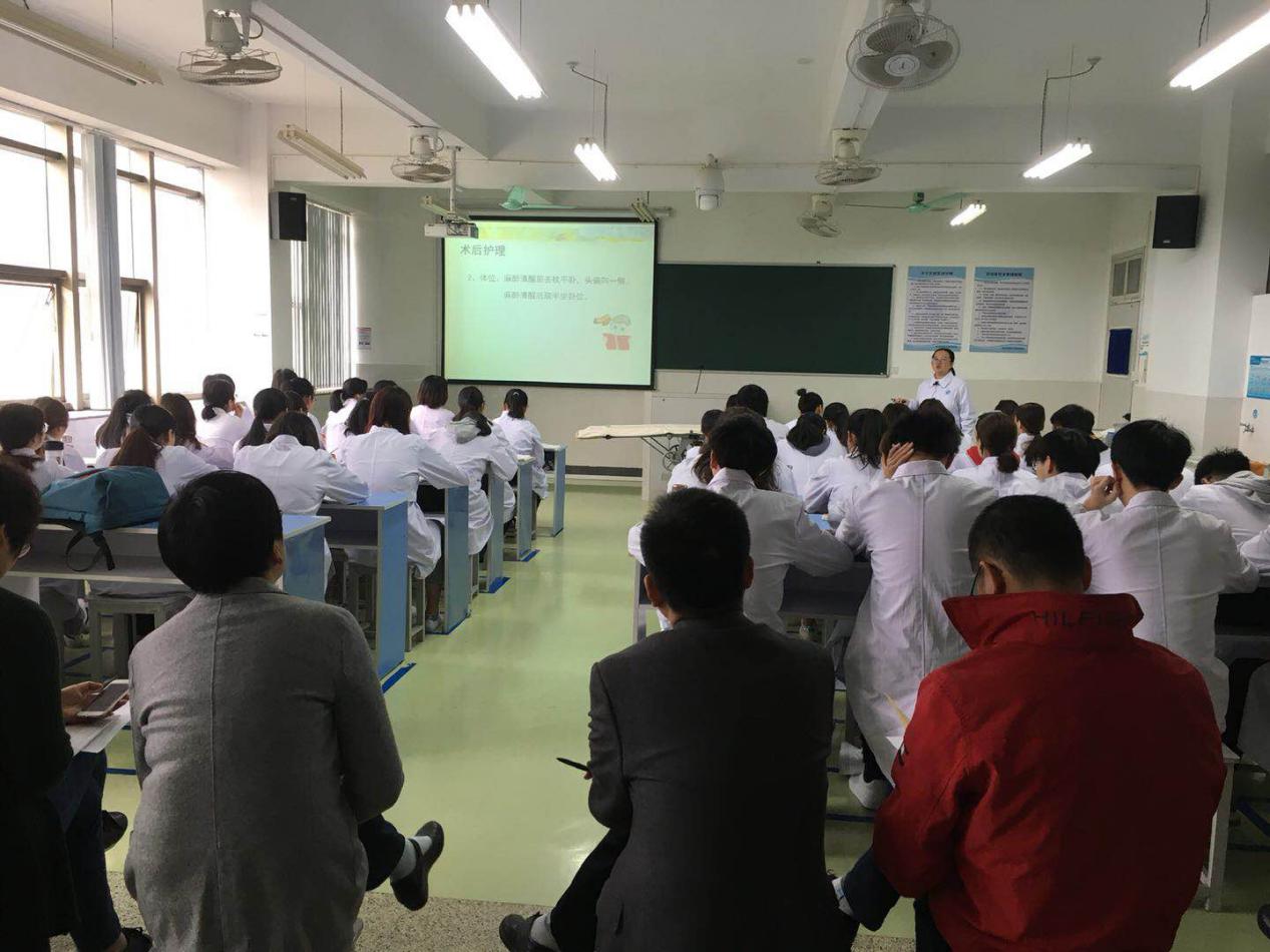 4月12日上午,校党委书记崔戴飞带领医学院“三进三评”第一听课小组,走进医学院实训中心鲍冠君老师主讲的《外科护理II》课堂听课。
