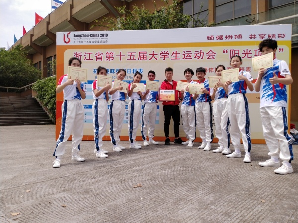 4月27日,浙江省第十五届大学生运动会“阳光项目”竞赛活动正式拉开帷幕。AK体育客户端共选派48名运动员参加了包括轮滑(男、女速度过桩)、拔河、跳绳、趣味拓展(旋风跑、毛毛虫竞速、大脚板、同心鼓)和第九套广播体操在内的5个大项,9个小项的比赛。
