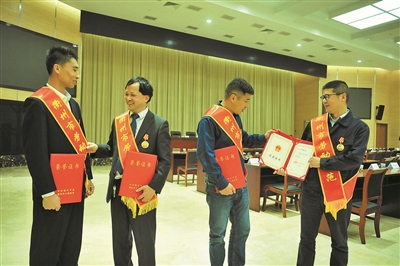 4月30日,衢州市庆祝“五一”国际劳动节暨劳模先进表彰大会举行,隆重表彰全市100名市级劳动模范和14个模范集体。表彰大会现场出现动人的一幕:有一对兄弟劳模和一对师徒劳模,同时受到表彰,同时登台受奖。