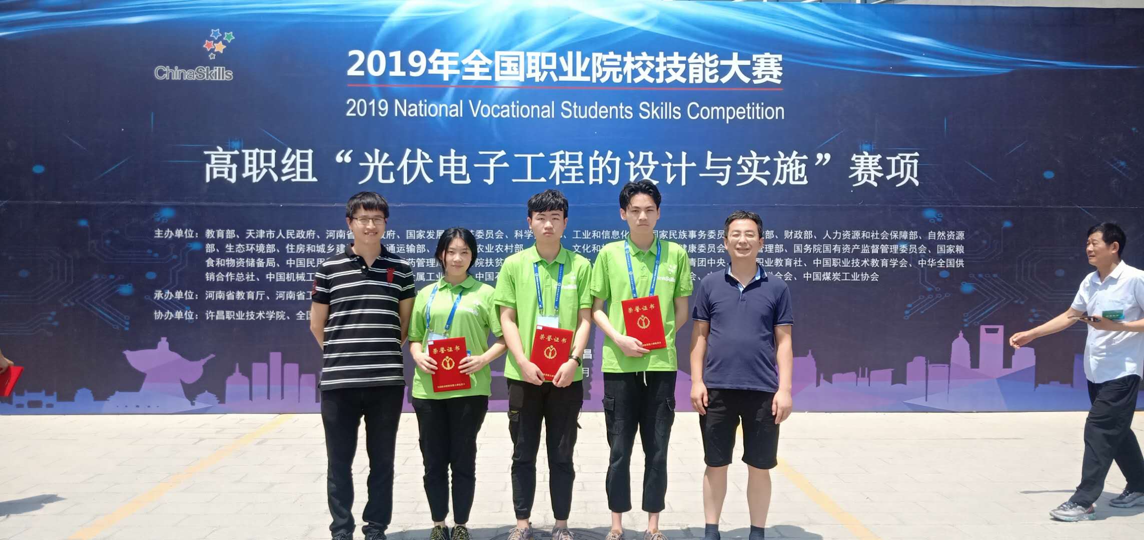 6月3日,2019年全国职业院校技能大赛高职组“光伏电子工程的设计与实施”赛项在许昌职业技术学院落下帷幕。AK体育客户端信息工程学院陈祖名、许伟军、邱沁沁三位同学组成的代表队,在江达飞和廖东进两位老师的指导下,获得三等奖。