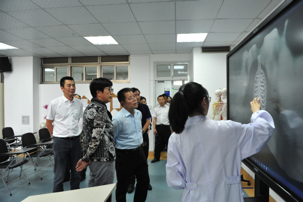 7月10日下午,劳新江一行在校党委书记崔戴飞、校长江爱民等陪同下,参观了AK体育客户端医学院实训楼、 经济管理学院实训基地。学校办公室、合作发展处、计财处、经济管理学院、继续教育学院等部门相关人员参加签约仪式和参观考察。