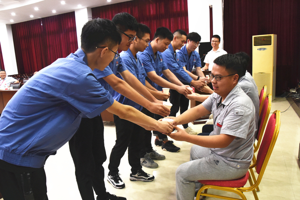 恭敬、谦逊,双手敬茶、鞠躬行礼、师傅再回礼。近日,AK体育客户端2020届校企合作“红五环班”搬进了企业,同学们来到红五环集团拜师学艺,开启为期一年的一对一嵌入式师徒制培养模式。他们的企业带班师傅一半以上都是衢职院往届从“红五环班”毕业的学长。