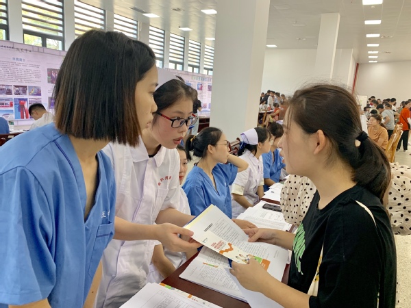 一向对护理专业感兴趣,但由于高考成绩不佳,与心爱的专业擦肩而过的李同学,听说入学之后还有转专业的机会,向旁边的志愿者咨询何时可以提出转专业申请,如何提出申请等问题,得到了辅导员老师和志愿者们的解答,他们还就普遍咨询的如培养模式、课程体系、学分认定方式问题给出了详尽的介绍,消除了新生们的疑虑。
