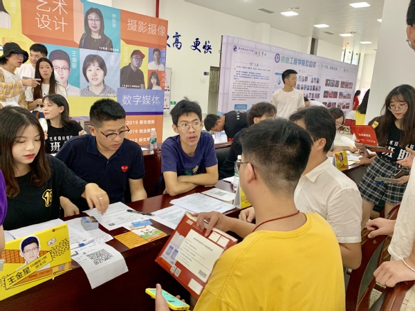 各二级学院推陈出新。机电工程学院在校南门花坛入口,将所有机电新生的一寸照做成宣传海报,欢迎新生成为“机电新青年”的一员;信息工程学院为新生及家长们留下“从‘信’开始 重新出发”开学全家福;经济管理学院为19级新生制订了21天寝室文明养成记挑战赛,帮助同学们从大一开始就养成文明的寝室住宿习惯;艺术设计学院党总支书记亲自上阵,带着家长们参观艺术楼,让家长们第一时间更加直观了解孩子所学专业;各二级学院在新生报道完毕后,开展新生家长会,向家长普及专业知识、就业前景、就业优势等相关知识,解释了学院奖学金、助学金等相关制度,让家长更加深层次的了解学校;后勤部为了保证校内人员的安全,在书院大桥食堂区域和体育馆区域设置了路障,禁止私家车俩随意来往、乱停乱放,并安排志愿者巡视,遇到异常路况灵活的调动人员进行及时疏导,保障了新生到校的安全,维持了正常秩序。