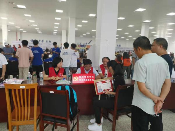 崔书记看到井然有序的接待大厅,对现场的志愿者团队服务表示肯定:“这次迎新工作繁琐、时间紧凑,同学们在火车站、汽车站接待新生,放弃了自己的中秋长假,很好的诠释了衢职的志愿精神。”