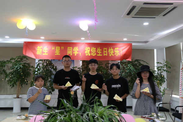 “希望你在艺术大家庭里,怀揣对未来的美好期待,踏踏实实走好每一步,学有所成,快乐成长。”19级艺术设计专业新生卢祎婷手捧刚刚收到的来自艺术设计学院党总支书记的生日卡,看了又看,“来之前我还暗暗伤感,我的成人礼怕是没时间过了,没想到老师、学长学姐给我们准备了这样的生日惊喜,太惊喜太感动了。”9月15日,是19级新生开学的日子,更是卢祎婷等5名新生的生日,学生处的老师们从迎新系统里筛选出开学当天过生日的同学名单,为他们准备了一个别样的生日会,学校党委书记、老师、一众学长学姐为新生们送上生日祝福,二级学院的书记们还亲手写下温暖祝福语,希望同学们获得归属感,更好更快地适应和融入大学生活。