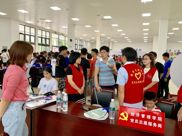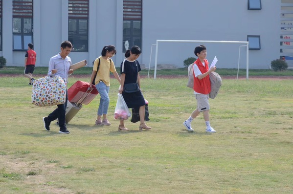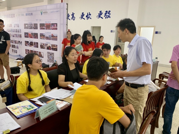 一大早,学校南门、体育馆、寝室入口处的新生接待点,老师和志愿者们已早早就位,为新生报道提供全方位服务。校党委书记崔戴飞、校长江爱民等领导来到新生报道处,与新生亲切交谈、为家长答疑解惑、关心志愿者工作。