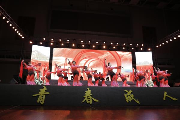 奋斗:新时代中国青年要用于砥砺奋斗。艺术设计学院学生代表郑秋云带来的演讲《奋斗的青春最美丽》,讲述了他高考失利到军校历练再到蜕变绽放的历程,启示广大青年学子要勇于奋斗、勇敢追梦。校民舞队带来的舞蹈《红高粱九儿》,惟妙惟肖的表演尽显巾帼风采、英雄本色。