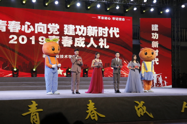 “2019青春成人礼”以“青春心向党 建功新时代”为主题,分为“不忘初心 矢志报国”、“使命担当 砥砺奋斗”、“尚德弘毅 求真力行”三个篇章。整场典礼围绕“立志”“爱国”“担当”“奋斗”“强技”“力行”6个关键词,融合了舞蹈、歌曲、舞台剧、光影秀、演讲等形式多样、精彩纷呈的节目,通过庄严的仪式、绚丽的舞台、寓教于乐的青春故事,与同学们共同探讨初心与使命。