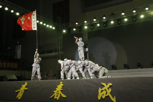 担当:新时代中国青年要担当时代责任。时代呼唤担当,民族振兴是青年的责任。文达天下,旅创辉煌,文旅学院带来的光影秀《文旅梦》将舞蹈动作和屏幕光影完美融合,美轮美奂。艺术设计学院带来的话剧《留住历史的记忆 点亮奋斗的底色》表演生动质朴,一幕幕场景,记录了历史的变迁,定格了岁月的印记。