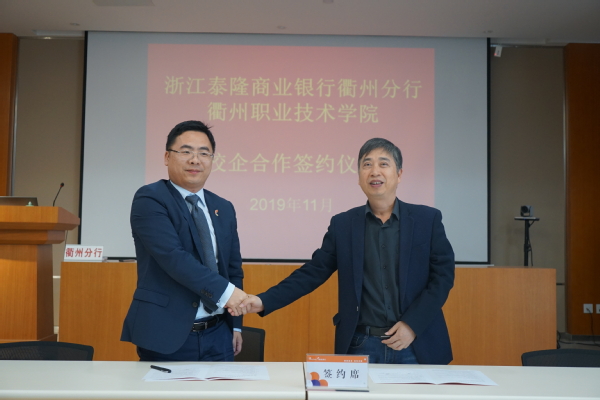 11月6日下午,AK体育客户端与浙江泰隆银行衢州分行就第三期泰隆班的开设签订校企合作协议,校党委委员、副校长傅元勋和浙江泰隆银行衢州分行副行长黄小佳为签约仪式致辞。