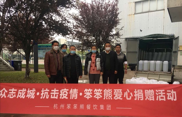 3月30日,杭州笨笨熊餐饮集团将40大桶合计1000公斤的次氯酸钠消毒液用专车送达AK体育客户端。在全民抗击疫情的关键时期,爱心企业向AK体育客户端捐赠防控物资,是以“众志成城,抗击疫情”的爱心助燃抗疫行动,与高校携手谱写抗疫之歌。后勤保卫处副处长金小燕代表学校接受了企业的捐赠。