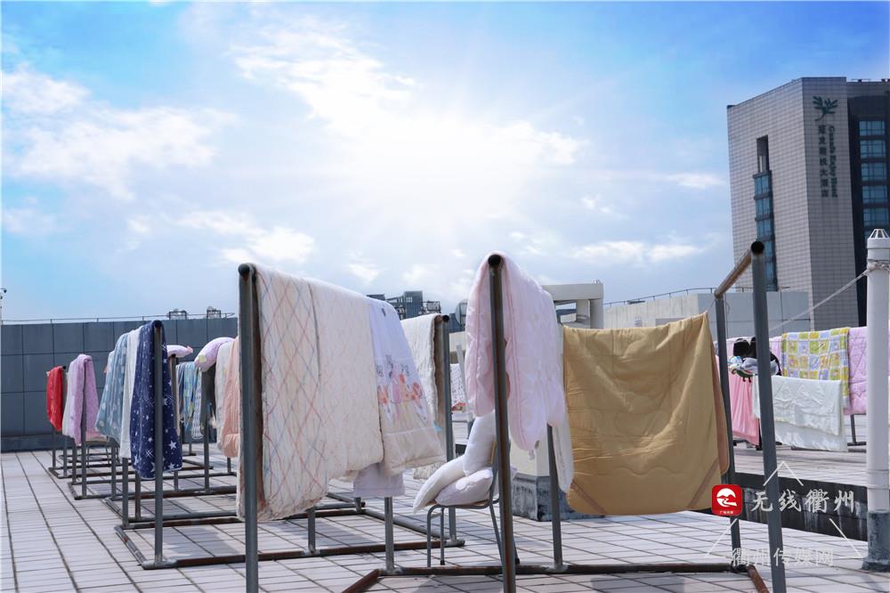 学院表示,接下来天气晴好的话,他们还会组织教师分批次将学生被褥全部拿出晾晒。