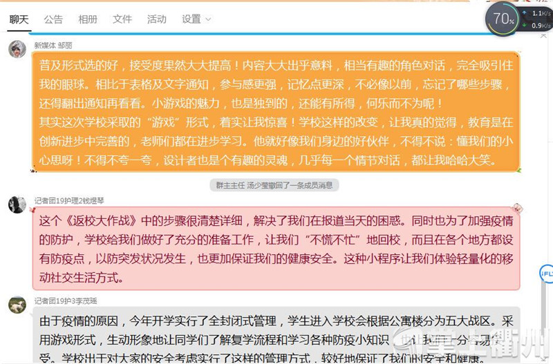 “同学们熟知了返校流程后,方便我们帮助老师们开展即将到来的一系列防疫工作,可以大大加快同学们的返校效率。”信息工程学院学生会副主席顾阳说,“而且开学之后万一如果同学在校内出现了一些症状,打完这个游戏熟知流程了就不会不知所措而着急出错,最大程度降低感染和传播的风险。”