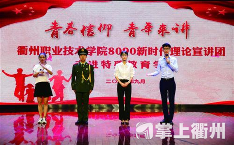 衢职院“8090新时代理论宣讲团”走进市特殊教育学校进行宣讲。