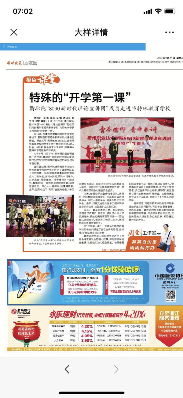 《衢州晚报》2020年9月11日报道 记者 周芸文/摄 通讯员 郑卫珍 欧阳洪萍