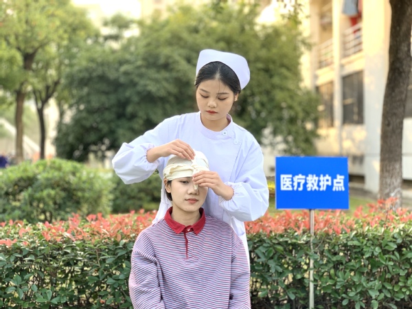 10月23日,AK体育客户端举行应急消防演练,以提高各类突发事件的自防、自救能力。此次应急疏散综合演练以灭火、应急疏散、物资抢运 、反恐、电梯救援、防汛救灾、医疗救护等专项演练为主。图为对在演练中抢救出来的伤员进行现场包扎。