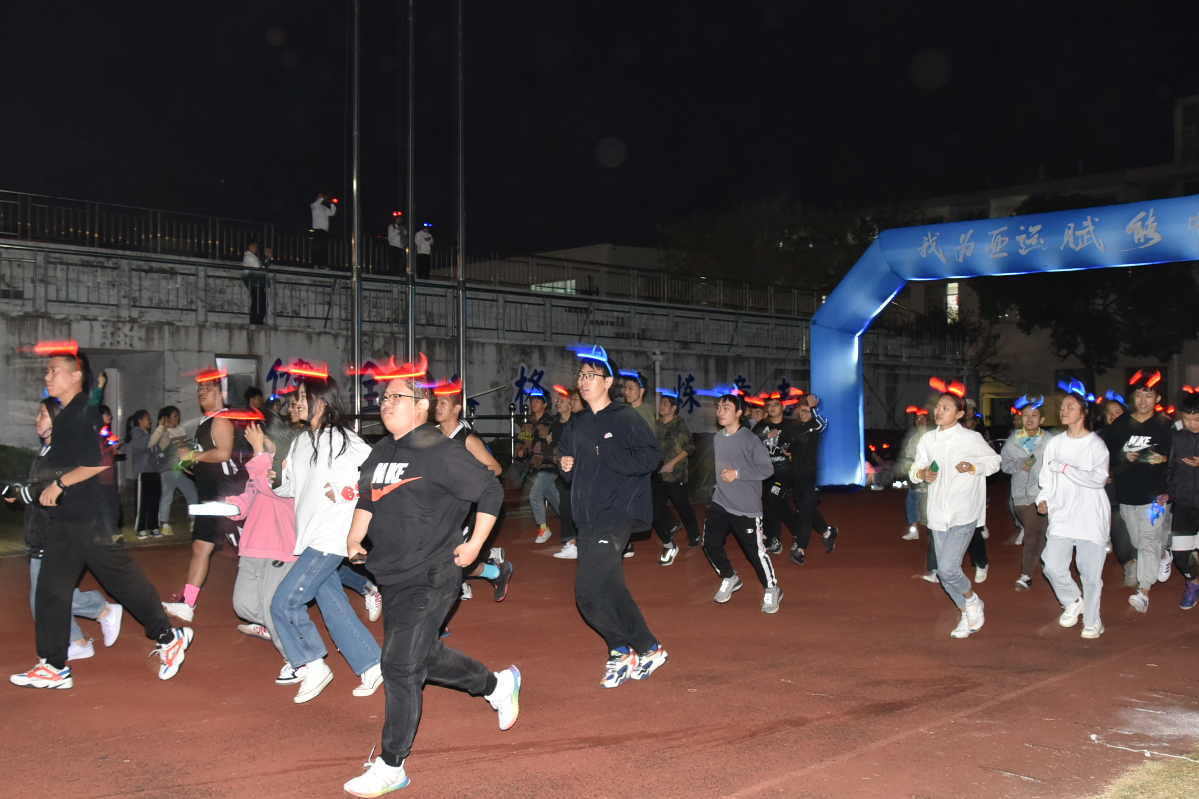夜色朦胧,校园内带着荧光棒、荧光灯等各种道具的学生迎风奔跑,在动感激扬的音乐声中,形成一条长长的移动五彩灯带,与天上的点点繁星遥相呼应,为运动赋予了一丝浪漫色彩。