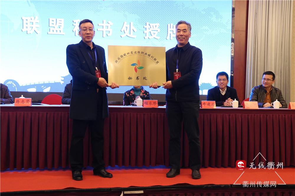 衢州市教育局副局长蒋志贤为联盟秘书处授牌。