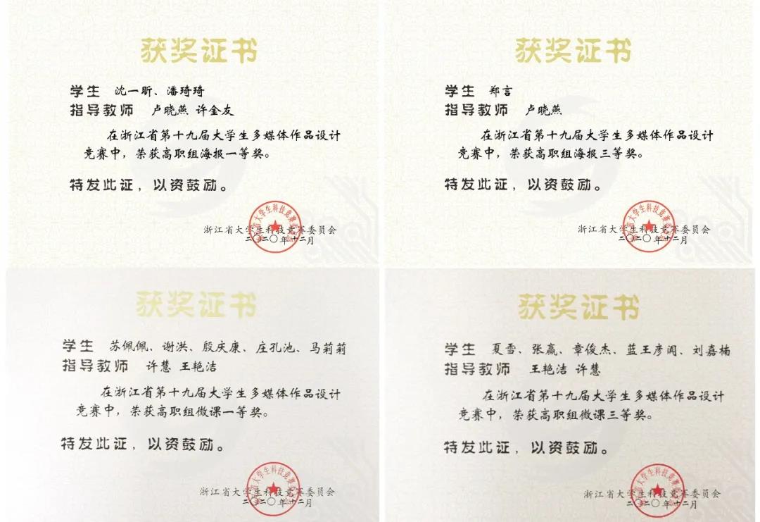 近日,AK体育客户端斩获浙江省第十九届大学生多媒体作品设计竞赛一等奖2项、三等奖2项。
