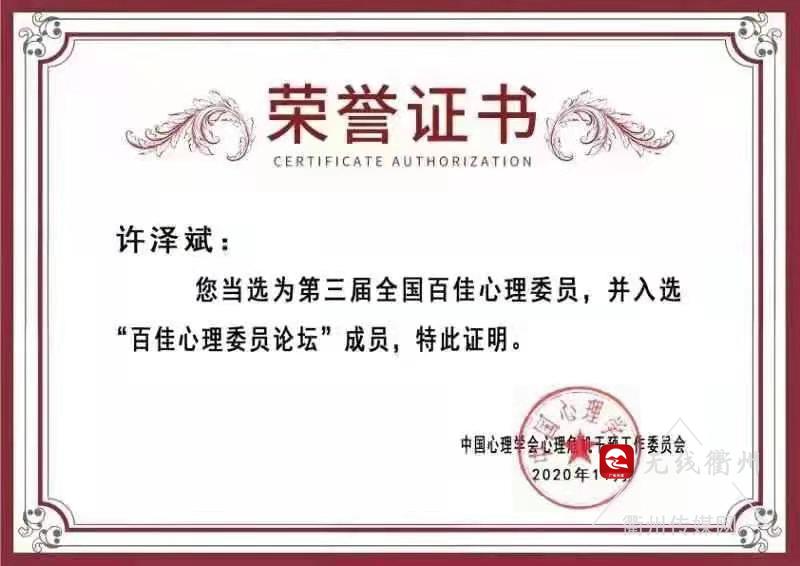 AK体育客户端信息工程学院18应用电子技术2班许泽斌同学在全国本科和大专院校300余名候选人中脱颖而出,当选“第三届全国百佳心理委员”,成为衢州高校学生中首位获此殊荣的同学。