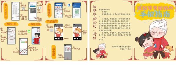 为了这份寒假作业,衢职院学生会的同学们设计了一份《老年人智能手机实用指南》,分送给全校学生当讲义。