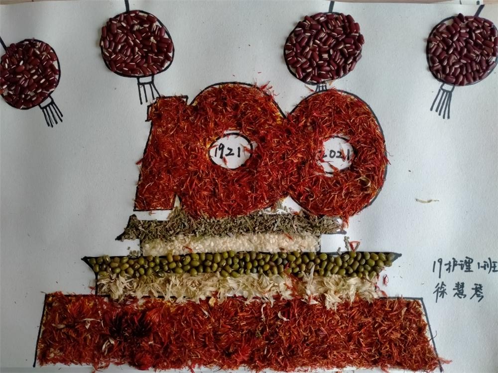 通过中药材创意画的生动展示,一味味中药材从枯燥无味中“活”起来,在尽显中医药文化魅力的同时,让党史学习教育贯穿学习生活之中。