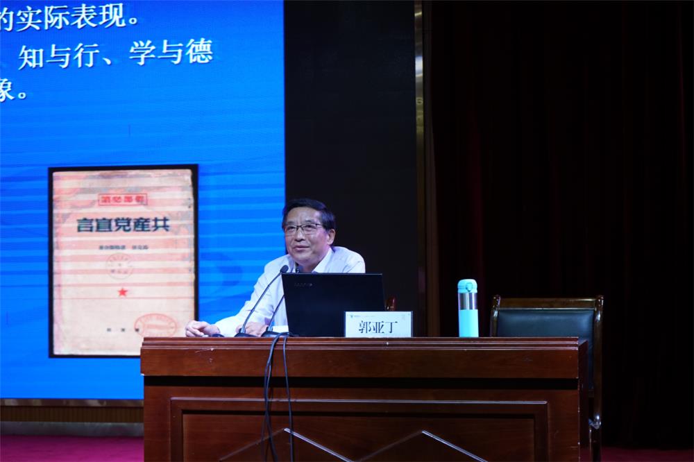 开幕式上,浙江省委党校、浙江省行政学院党史党建教研部原主任郭亚丁教授向师生党员作了《党的作风与党的传统》专题报告。郭教授从作风的内涵、特征及关系,作风建设的客观性和必要性,作风建设的基本经验和现实要求等三个方面进行阐述,旁征博引大量案例,深入解读共产党作风建设的历史经验,引导师生不忘初心、不忘历史,知史爱党、知史爱国。