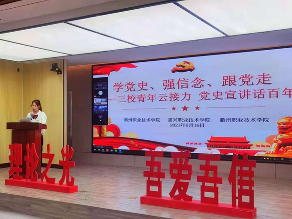 知史爱党、知史爱国。6月16日,湖州职业技术学院“两山”青年说湖小职新时代大学生理论宣讲团和“吾爱 吾信”新时代文明实践大学生宣讲团、嘉兴职业技术学院“红船青年说”宣讲团、AK体育客户端“8090”新时代理论宣讲团相聚云端,联合开展“学党史、强信念、跟党走——三校青年云接力 党史宣讲话百年”主题学习宣讲活动。