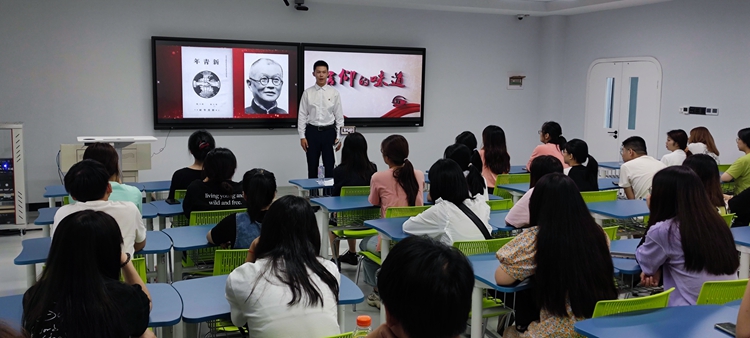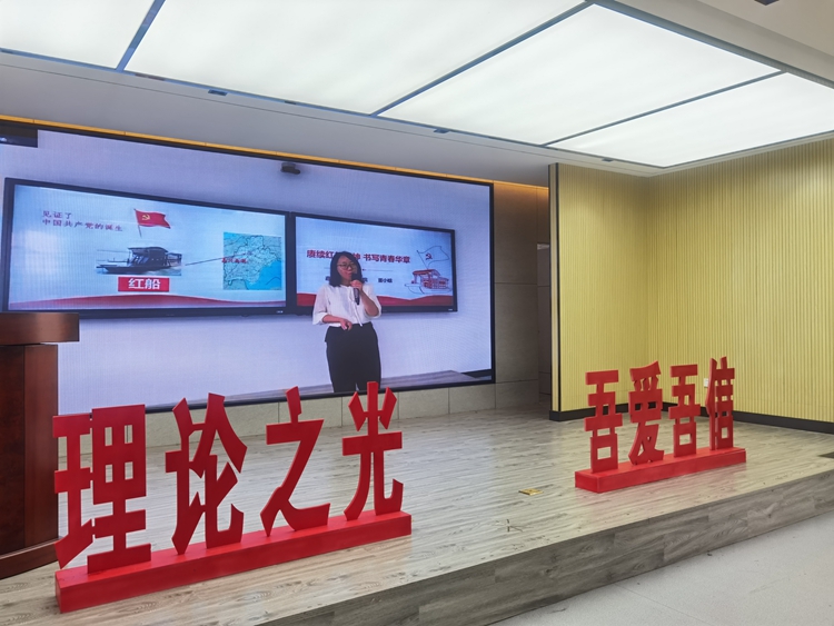 嘉兴职院“红船青年说”宣讲团宣讲员董小晗老师在进行宣讲