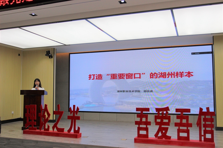 湖州职院“两山”青年说湖小职新时代大学生宣讲团成员胡佳琪同学在进行宣讲