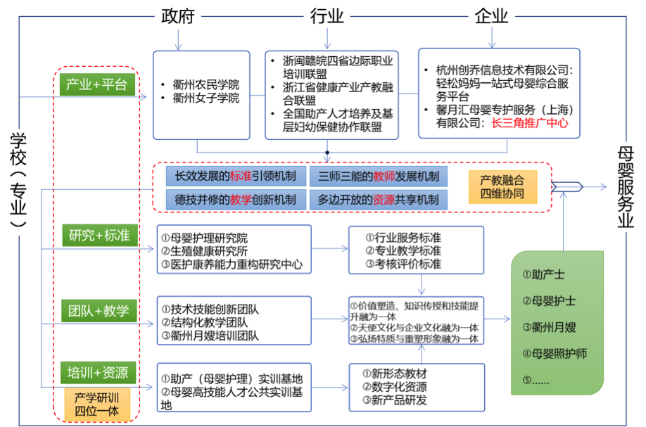 浙江AK体育客户端聚焦当前人民群众反映强烈的母婴服务从业人员数量不足、职业能力水平普遍不高等实际问题,以助产“小”专业撬动母婴健康服务“大”产业,服务生命健康“全”周期,专业建设与经济社会发展同频共振,赋能地方母婴健康产业的高质量发展,逐步构建生成了特色鲜明的“四维协同、四位一体”专业服务产业发展新范式。推动各地市合作发展,实现共赢,成功打造了浙闽赣皖职业教育共同体。
