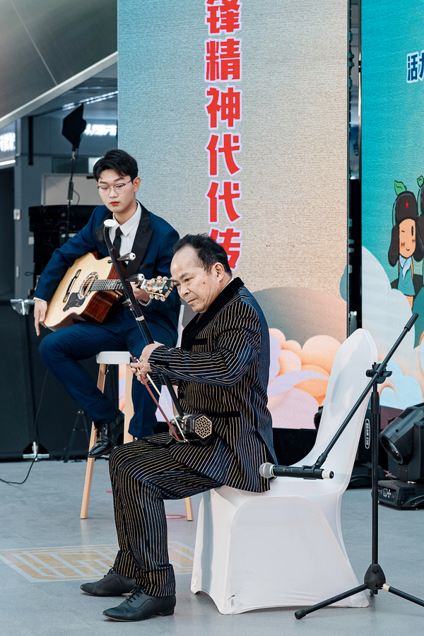 柯城区石梁中学的退休音乐老师郑元清当天上午8点半穿着笔挺的西装早早来到活动现场。他这身行头是大学生陪他一起挑选的。为了这场表演,郑元清和朱志成排练了一周时间。时间虽短,但节目效果惊艳,不过,郑元清很低调,节目结束后,他谦虚地说:“这次表演有些紧张,没有发挥出最好的状态。以后有演出机会,一定会发挥得更好。”